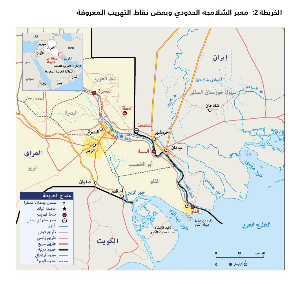 وبعد انهيار الجهاز الأمني لنظام البعث السابق في أعقاب الغزو الأميركي للعراق في العام 2003، بدأت المجموعات المسلحة العراقية المدعومة من الحرس الثوري الإيراني في إنشاء معاقل لها في البصرة وعلى طول المنطقة الحدودية، بما فيها معبر الشلامجة.59 وحتى بعد استعادة الحكومة السيطرة على المعبر، حافظت هذه المجموعات على درجة كبيرة من النفوذ هناك، بحسب السكان المحليين.